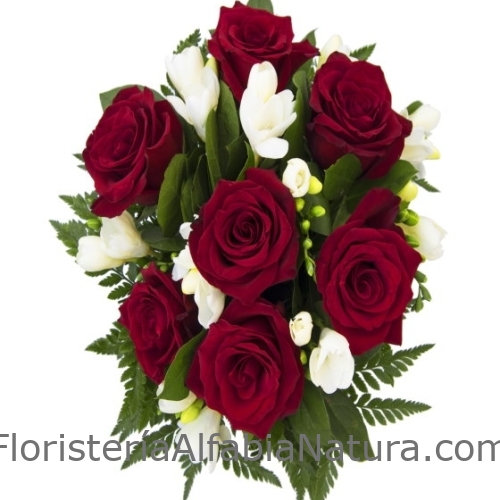 Bonito y elegante, siempre este Ramo Rosas Rojas y Fresias. Regalar rosas es el regalo ideal. Los ramos de rosas para regalo, están realizados siempre por floristas profesionales, especialistas en el arte floral, por lo que siempre presentamos un producto fresco y elaborado con mucho mimo. Además, ofrecemos un servicio de envío de arreglos florales.